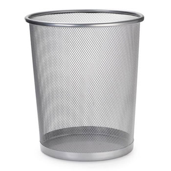 Lixeira redonda de metal prateado em malha fina