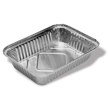 Embalagem de Aluminio Rectangular descartável com tampa incluida, pode ir ao forno.
