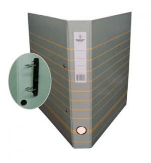 Pasta arquivo cinza com linhas amarelas e argolas metálicas visíveis